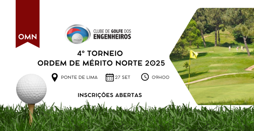 O Clube de Golfe dos Engenheiros irá organizar o 4º Torneio da Ordem de Mérito NORTE 2025, no próximo dia 27 de Setembro (sábado), no campo de golfe de Ponte de Lima, em formato de shotgun, a partir das 9h00.
